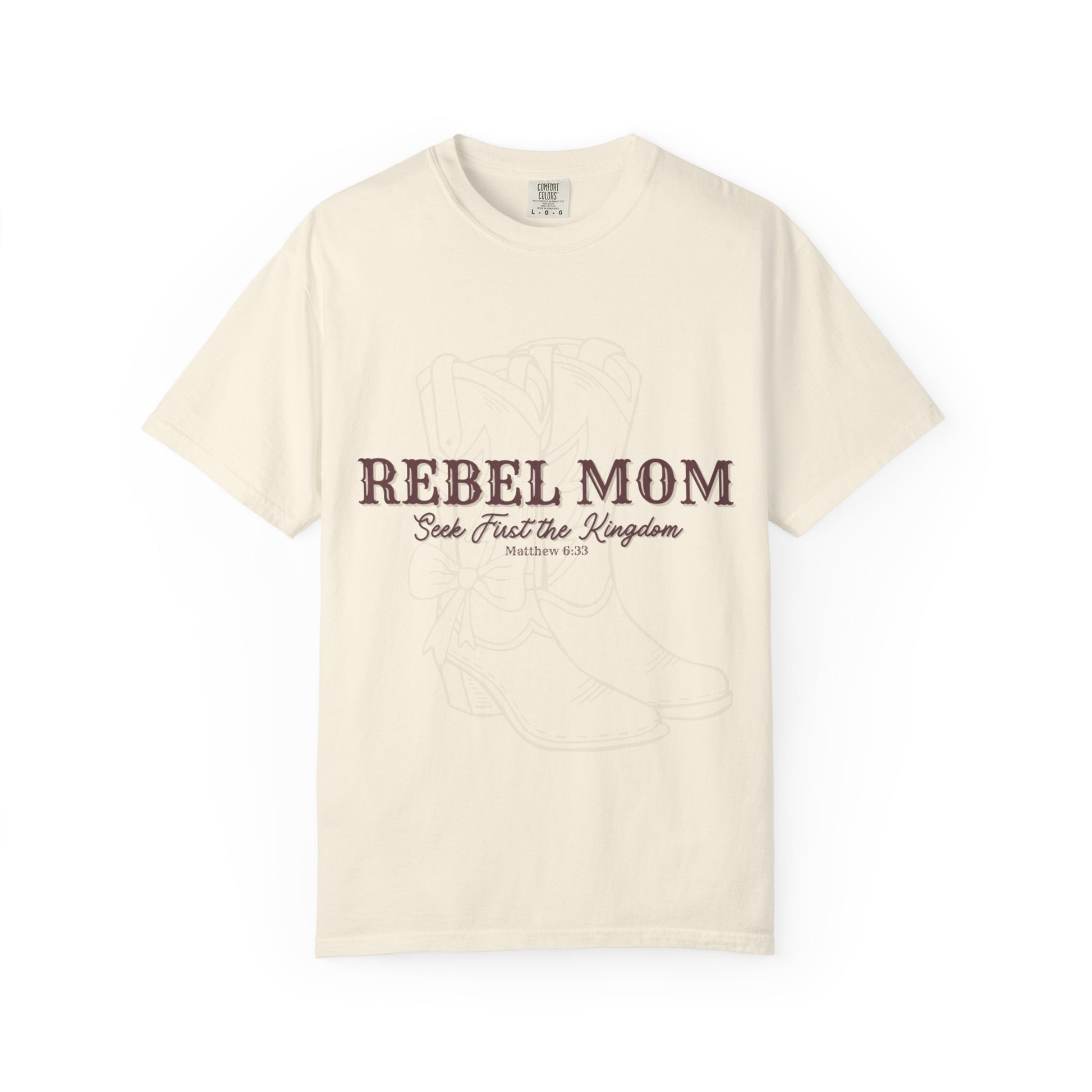 This rebel mom t-shirt with the quote 'seek first the kingdom of heaven' exudes a cool and comfy vibe, perfect for moms who want to express their rebellious for Jesus side. Ideal for Mother's Day, birthdays, or any occasion where a mom wants to stand out.